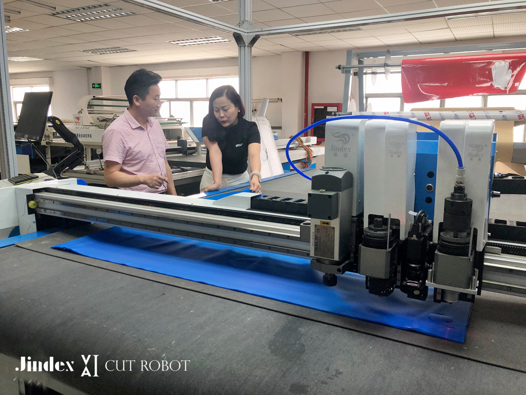 朱媧秘書長一行人在錦德營銷總監張景琳女生等公司領導的陪同下,深入參觀了錦德智能切割設備演示廳與生產1-3車間,詳細了解了公司的發展歷程。對于錦德智能裁切設備在此次新冠疫情防控工作中所起到的重要作用,給予了高度肯定。